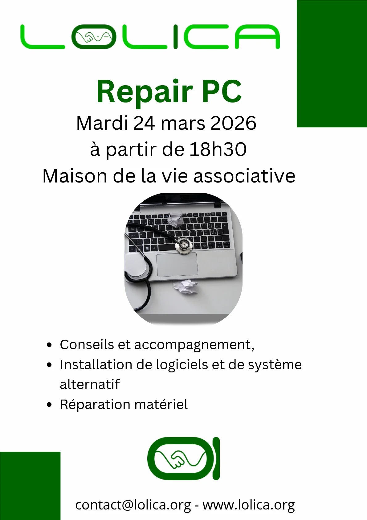 Prochain rendez-vousAtelier Repair'PC à la Maison de la Vie Associative Cliquez ici pour plus de détail